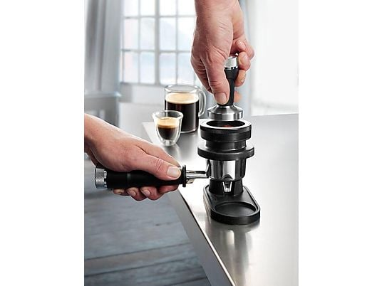 • Dosierhilfe & Tamping Guide: Sauberes und korrekt dosiertes Kaffeebett im Filtersieb.